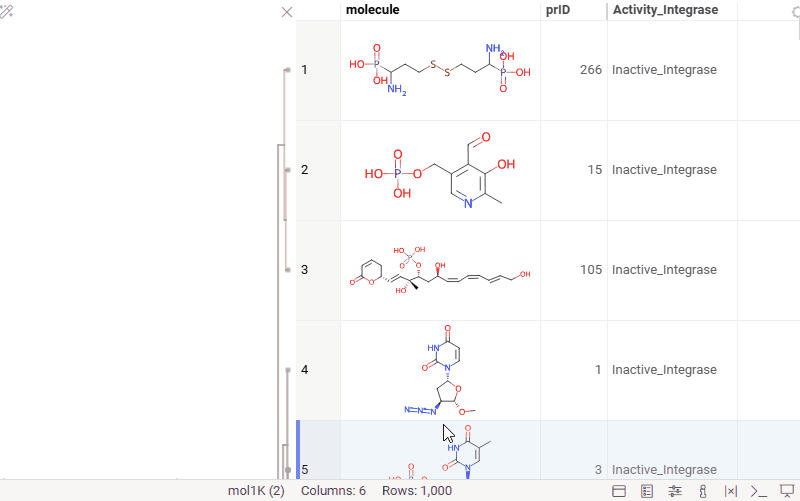 Hierarchical clustering function from Dendrogram package now supports Molecule columns in various formats.