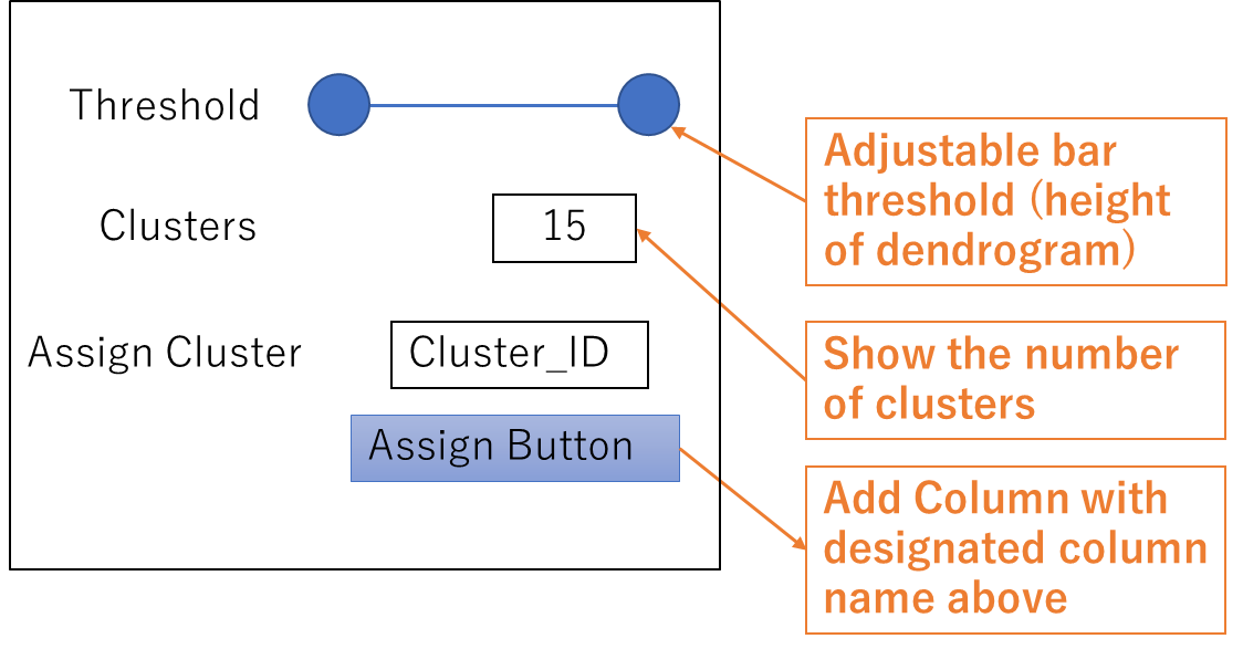For example, it would be helpful if users could specify a threshold to determine how many clusters the data is divided into, and be able to add a column with cluster numbers assigned to each data point.